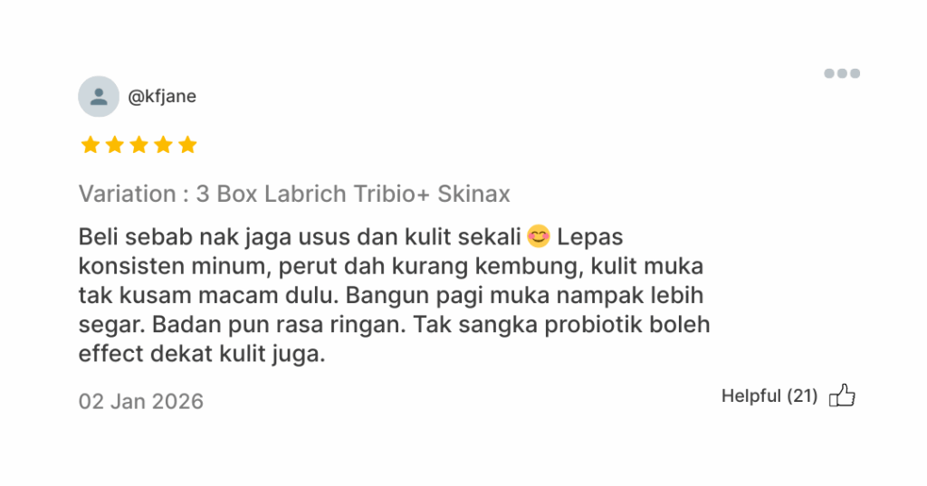 Kulit mula nampak lebih segar & kurang kusam. Tona wajah perlahan-lahan jadi lebih sekata.