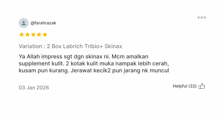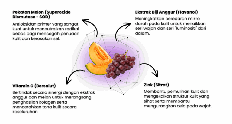 Skin radiance lebih ketara, kulit nampak lebih anjal & sihat. Wajah kelihatan glowing walaupun tanpa makeup tebal.